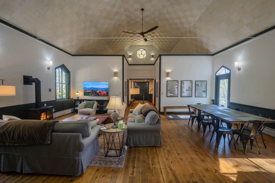 Whether you're here to ski, hike, paddle, or simply unplug, The Sanctuary offers comfort, character, and connection to nature. Original chapel windows, soaring ceilings, and modern amenities create the perfect blend of historic charm and contemporary design.